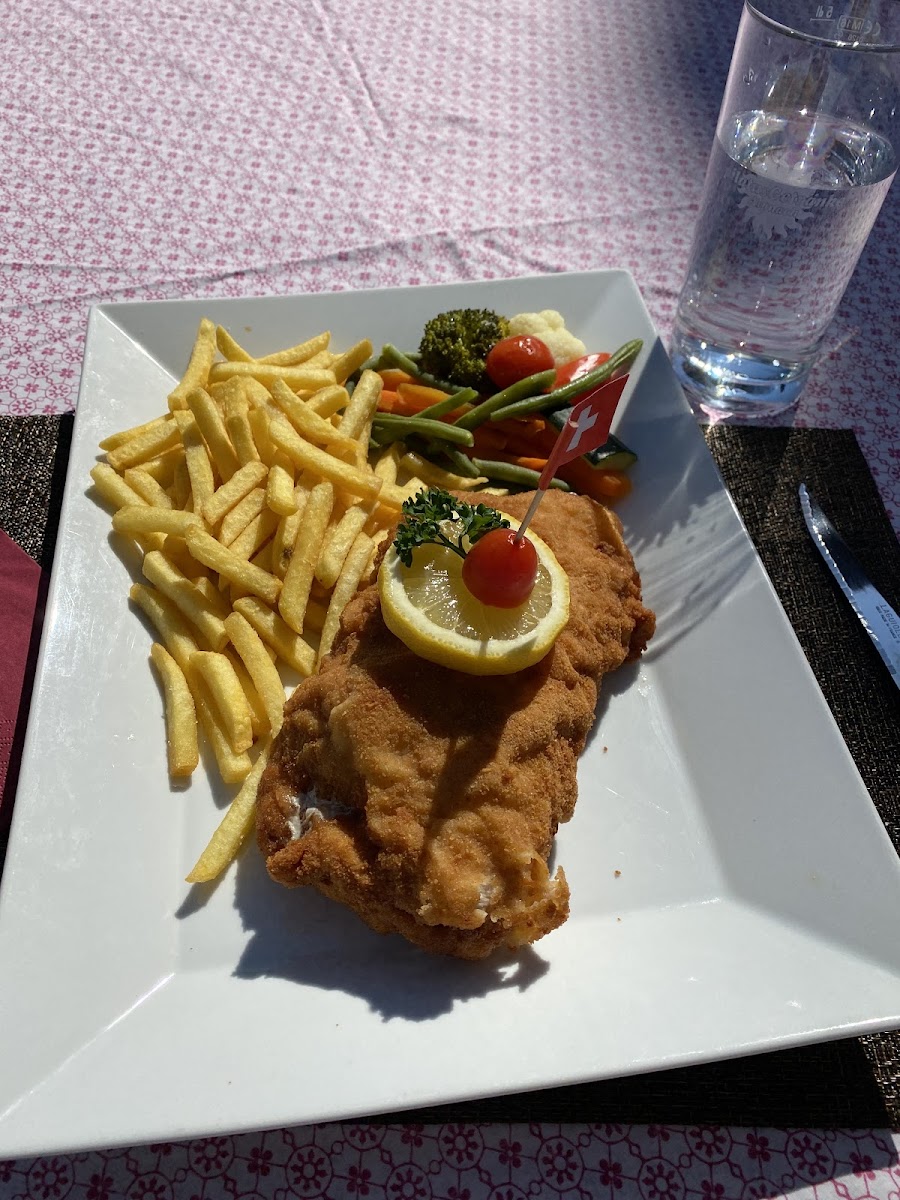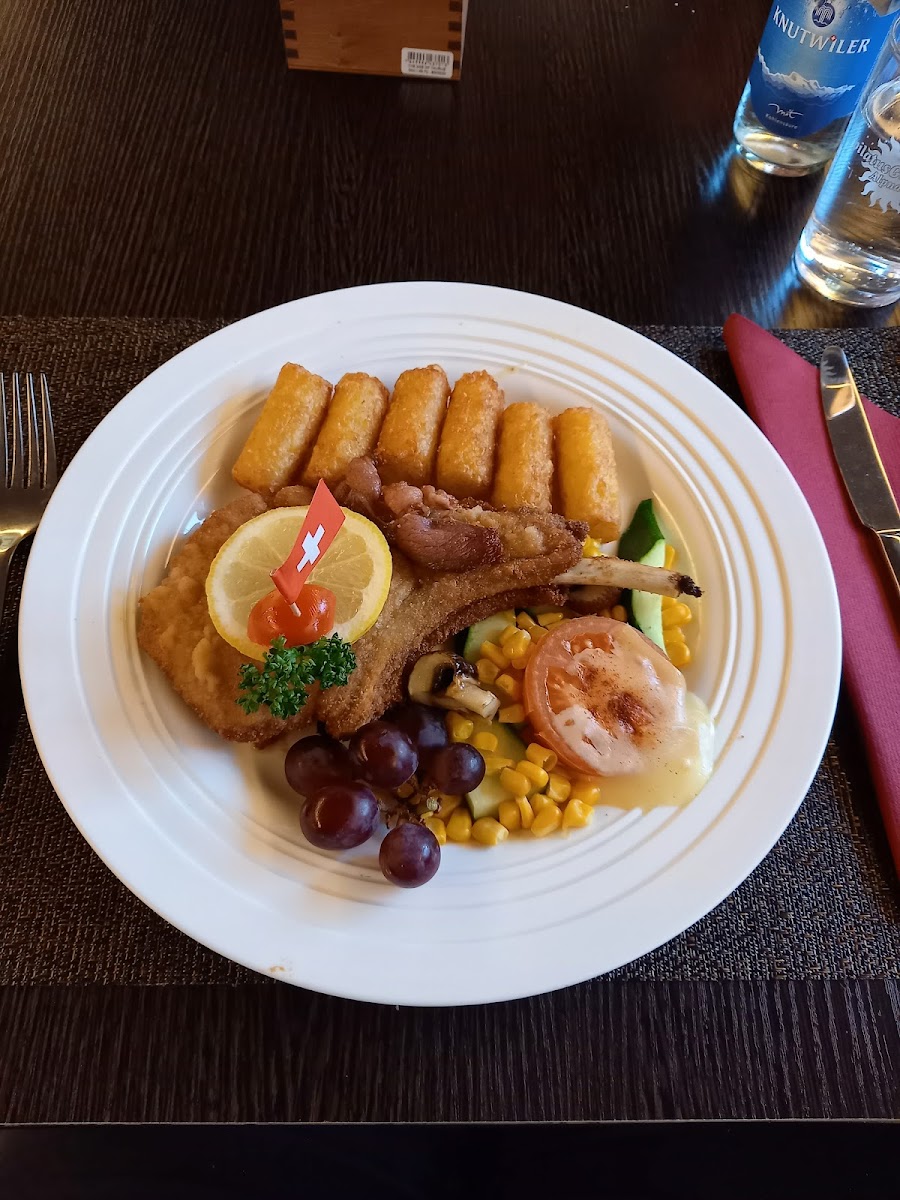 Another beloved favorite on the menu is the Cordon Bleu Und Pommes Frites, a classic Swiss dish that features tender veal or pork schnitzel filled with melted cheese and ham, paired perfectly with crispy fries. If you're in the mood for something hearty and comforting, the Paniertes Kotlett Mit Gemüse Und Kroketten is an excellent choice. This breaded pork chop served with vegetables and croquettes is a satisfying and flavorful dish that’s sure to fill you up. For those who enjoy lighter, charcuterie-style fare, the Daniele Rohschinken offers a delicate taste of Italian-style prosciutto, perfect for sharing with a glass of wine.